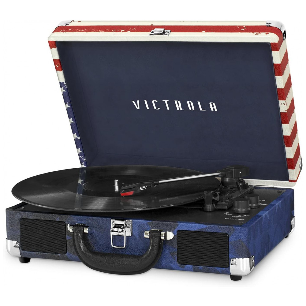 Vitrola Toca Discos 3 Velocidades, Entrada AUX, 45 RPM, 110v, VICTROLA VSC 550BT USA, Azul: TOCA DISCO DE TRÊS VELOCIDADES ACIONADA POR CORREIA Este toca discos de mala de 3 velocidades 33 1, 3, 45, 78 rpm apresenta QUALIDADE DE SOM PREMIUM ATUALIZADA e fica em pés de isolamento de som que evitam vibração.