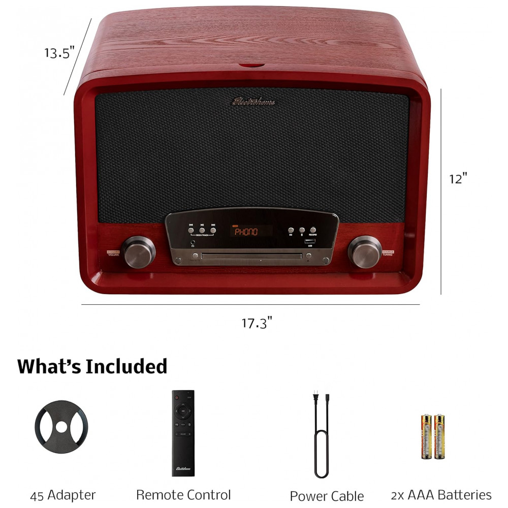 Vitrola, Toca Discos 3 Velocidades, sem fio, com USB e Controle Remoto, 33 RPM, ELECTROHOME RR75C, Vermelho: SISTEMA 7 em 1 PARA REPRODUZIR SUA COLEÇÃO INTEIRA DE MÚSICA Reproduz todas as suas músicas favoritas, desde discos de vinil a streaming de música digital por meio de toca discos, Bluetooth, Aux in, rádio AM , FM, CD player e USB EXPERIÊNCIA DE ESCUTA VINIL AQUECIDA DE ENCHIMENTO DE SALA Aprecie os sons puramente analógicos dos componentes de áudio premium, incluindo toca discos com correia de 3 velocidades, agulha de safira e 4 alto falantes de alto desempenho ARMÁRIO DE MADEIRA ARTIFICIADO À MÃO E ACUSTICAMENTE AFINADO Apoiado pelos 100 anos de desenvolvimento de produtos de áudio de alta fidelidade da Electrohome, o impressionante design retro moderno adiciona um toque vintage ao mesmo tempo que oferece o som quente de um gabinete de madeira GRAVAÇÃO E REPRODUÇÃO DE VINIL PARA MP3 Digitalize seus discos de vinil ou CDs para arquivos MP3 em um drive USB para preservar sua preciosa coleção de músicas para a vida e reproduzi los instantaneamente através de USB WIRELESS BLUETOOTH MUSIC STREAMING Transmita música diretamente de seu smartphone ou tablet para desfrutar de seus MP3s ou serviços de streaming de música como Spotify, Music ou Apple Music
