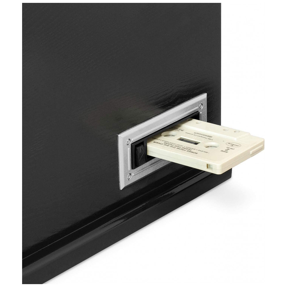 É perfeito para sua sala de estar, quarto ou escritório e uma ótima opção para os amantes do vinil TODOS OS CONTROLES QUE VOCÊ PRECISA Possui um botão de volume, sintonizador FM e botões de clique fácil para selecionar entrada, ligar , desligar, reproduzir , pausar , avançar , retroceder, ejetar, programar, embaralhar, repetir e um controle remoto de função completa OPÇÕES DE CONEXÃO EXPANDIDAS Amplie o som conectando alto falantes externos ou um amplificador por meio das saídas de linha RCA.