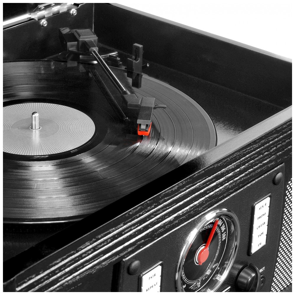 Vitrola Toca Discos Retrô Central Multimídia Alto falantes Estéreos Integrados, 110v, VICTROLA VTA 600B BLK, Preto