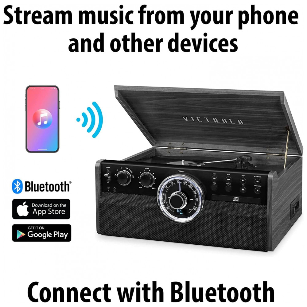 Vitrola Toca Discos Retrô Vitrola, 3 Velocidades com Funções Bluetooth, Rádio, FM, 110v, VICTROLA VTA 270B ESP, Marrom: CENTRO DE ENTRETENIMENTO 6 em 1 Com aparência de casa de fazenda tradicional por fora e recursos modernos por dentro, ouça do seu jeito discos de vinil, rádio FM, CDs, cassetes ou streaming de música do seu smartphone via Bluetooth ou conector auxiliar, fone de ouvido de 3, NÃO É NECESSÁRIO SISTEMA ESTÉREO OU EQUIPAMENTO EXTRA Coloque o em funcionamento em minutos.
