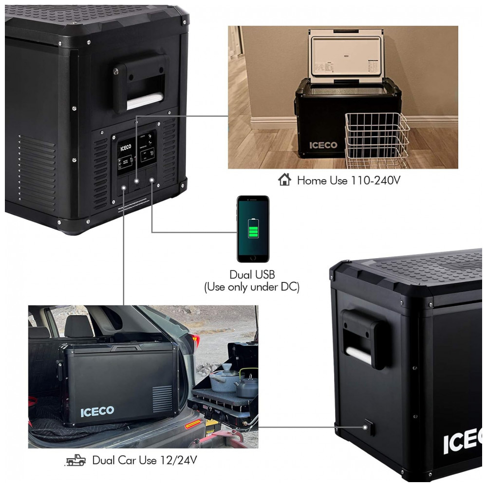 VL60 Cooler, Geladeira Elétrica Automotiva 60L Portátil, 12, 24V DC 110, 240V AC, ICECO, Preto: