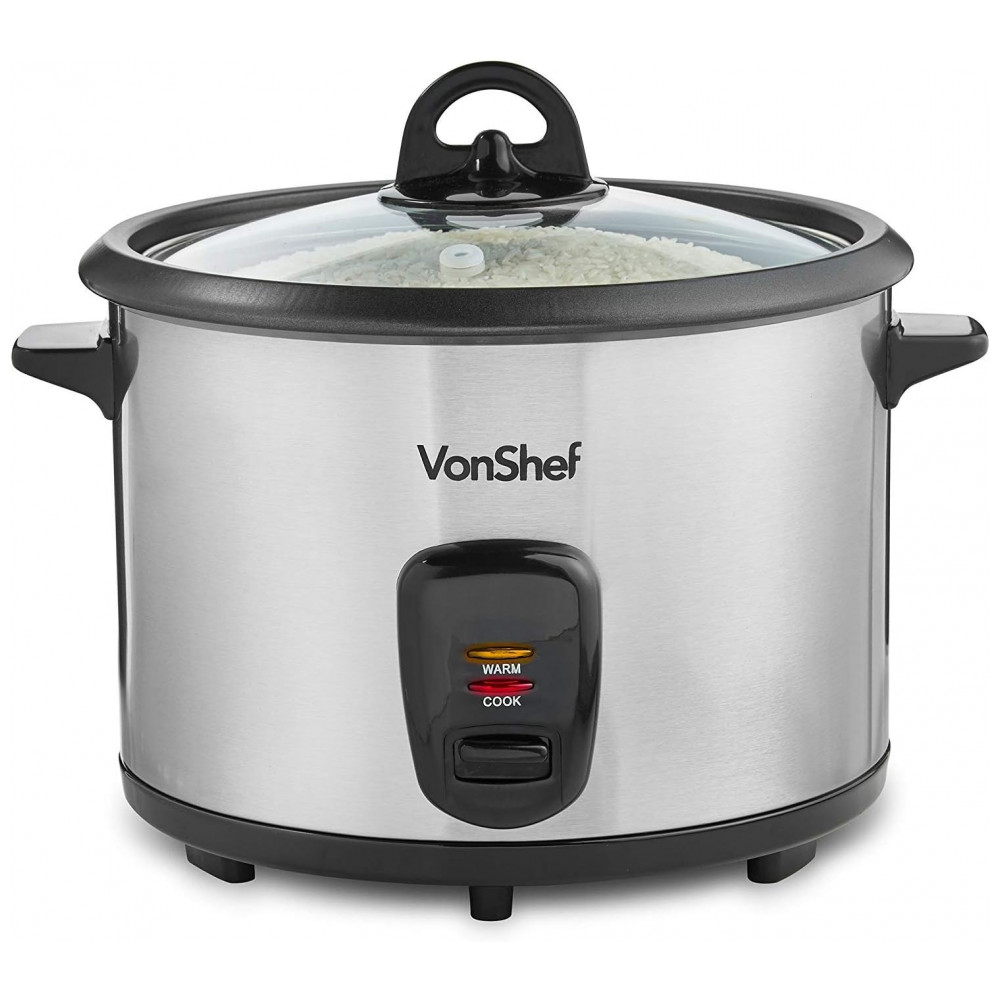 Vonshef Panela de Arroz Elétrica 1.8L Multifuncional com Desligamento Automático, 700W, 110v, DYNASTAR 13343, Prateado