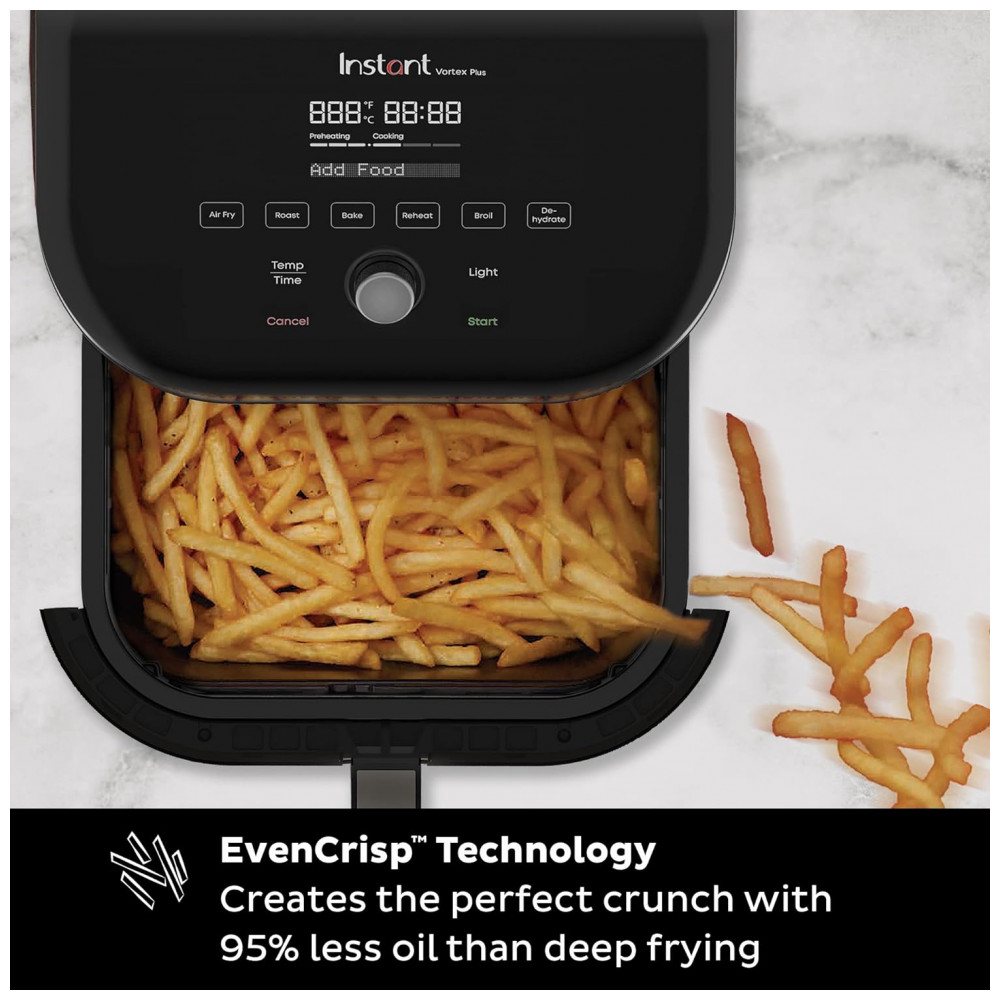Vortex Fritadeira Elétrica AirFryer, Capacidade 6L com Painel Digital, 110V 1700W, INSTANT POT 140 3089 01, Preto: Apresentando a Air Fryer Instant Vortex Plus de 5,7 Litros com Tecnologia Odor Erase Acompanhe o Cozimento dos Alimentos A janela ClearCook e a luz interna permitem que você monitore facilmente o progresso do cozimento sem abrir a cesta.