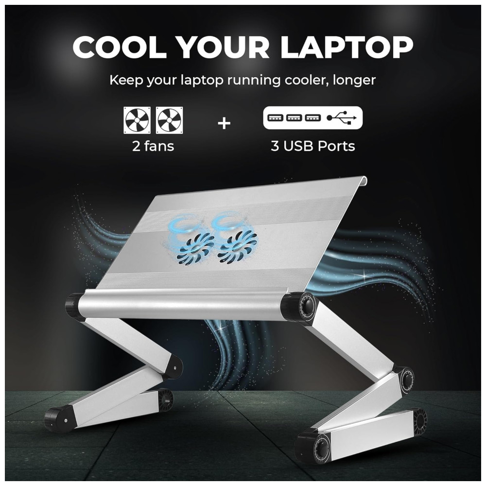 WorkEZ Cool Cooling Laptop Cooling Stand Lap Desk Tray for Bed Couch com 2 ventiladores 3 portas USB Mouse Pad, cinza, UNCAGED ERGONOMICS WECs, Cinza: FUNCIONA EM TODOS OS LUGARES trabalhe sentado e ajustáveis, o suporte para laptop permite que você seja mais confortável na mesa ou em pé em uma mesa e laptop para cama e sofá 2 VENTILADORES 3 PORTAS USB Duas portas USB de resfriamento de 3 notebooks.