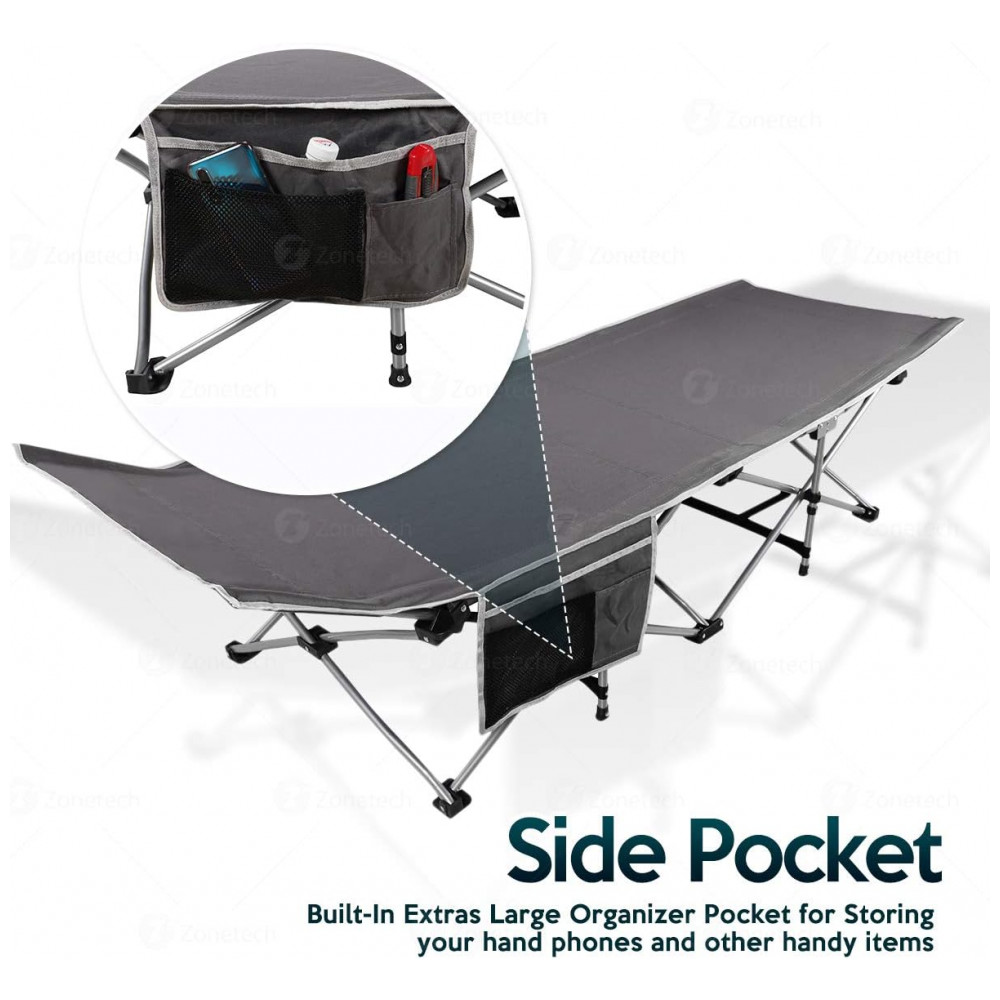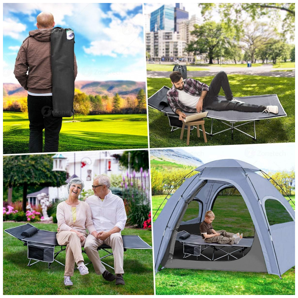 Zone Tech Cama Acampamento, Camping Dobrável Portátil, até 136 kg, ZONETECH, Preto